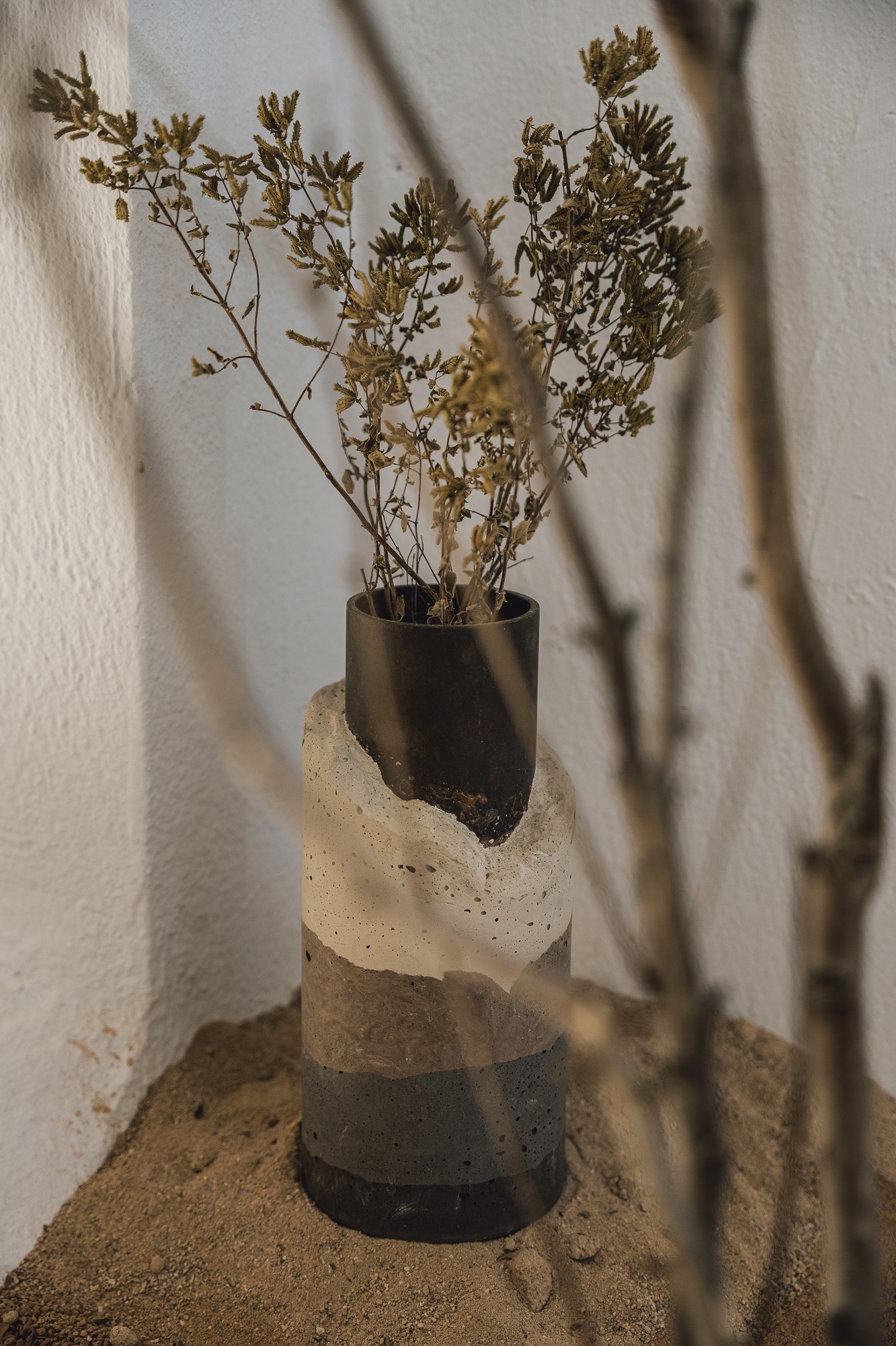 A collection of geologically informed everyday items, cast in concrete and characterised by earthen tones. Stratification is the overlapping of various mineral compositions, where the upper layers are younger than the ones under them, showing the passing of time in stacks of diverse deposits. The Mediterranean basin is home to a multitude of diverse geological phenomena, with a rich story of sedimentation, erosion, and strong volcanic activity, all of which contribute to make a unique stratified environment. This concept makes us reflect on our conception of time through the geological spectrum in the Mediterranean and our planet as a whole. You can find stools and tables in the exterior design project for Ekies Resort’s Bubo Restaurant. Discover more on : urbietorbi.gr