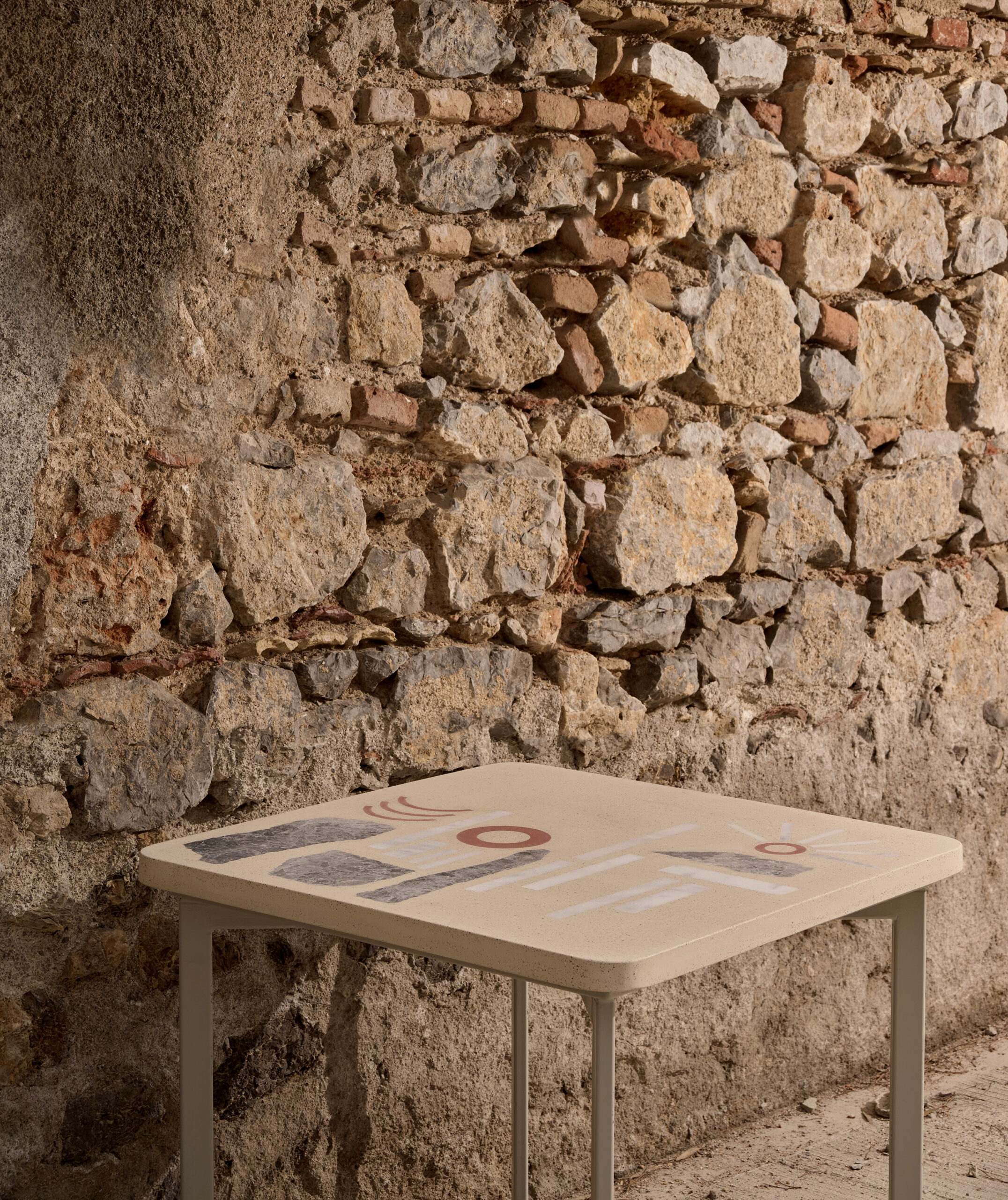 The Legante tables are crafted from cast concrete, combined with pieces of materials sourced from the remnants of a nearby marble workshop and a traditional ceramic studio, adding an extra dimension of sustainability to their dynamic inspiration. This fusion creates a contemporary terrazzo, reflecting the diverse cultural mosaic of the Mediterranean basin. People sailing across its waters exchanged goods and knowledge, leaving traces of their passing, lifestyles, and constructions, building cities with local stones, terracotta bricks, and tiles. Discover more on : urbietorbi.gr